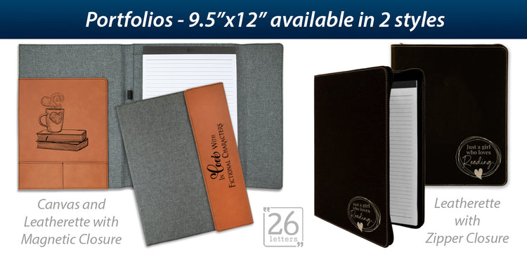 Our high-quality portfolios are a great way to keep you paperwork organized, while carrying your love of books to your next meeting or class!