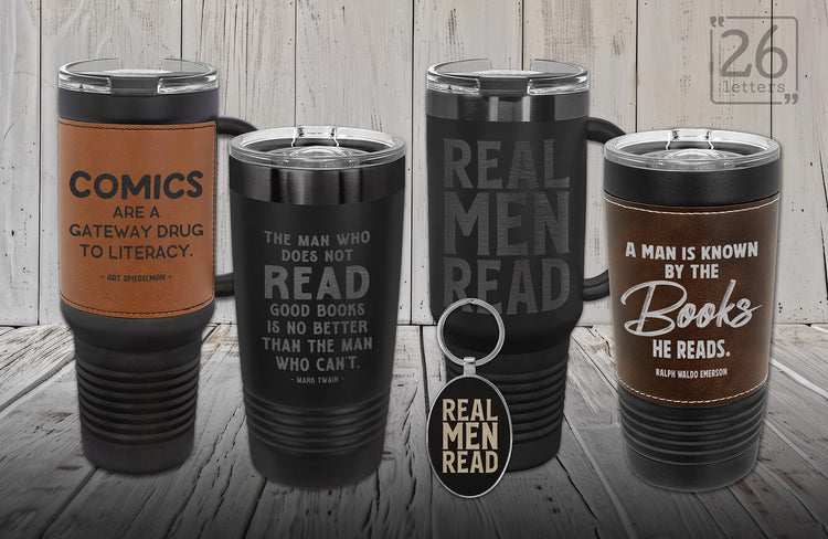 Yes, you are a real man if you don't read. This tongue-in-cheek product line is simply to celebrate men who enjoy a good book! We wanted to create a product line that is especially designed with a more masculine feel.