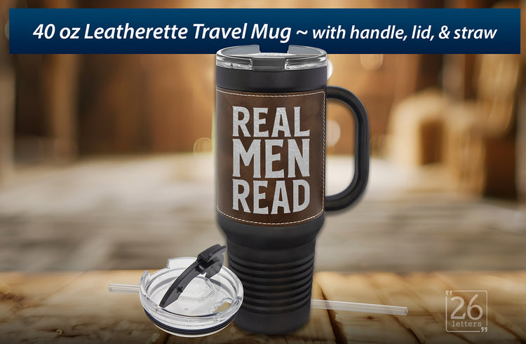 Real Men Read ~ Leatherette & Black 40 oz Travel Mug