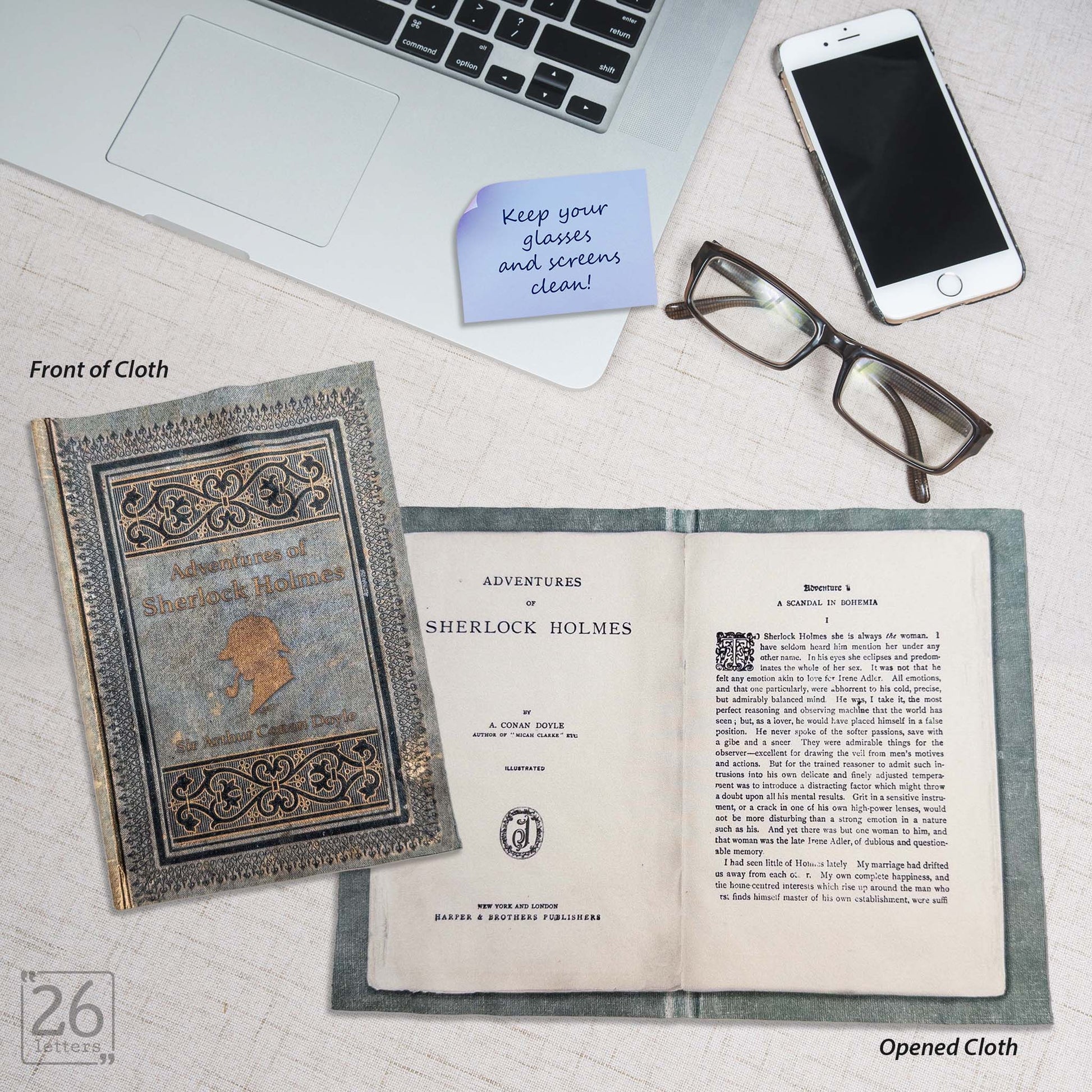 These cloths look just like a real book! They're printed full-color on both sides and are great for cleaning smudges on your reading glasses, sunglasses, phone, computer, tablet, and reader screens! They fold super small so you can take them anywhere!